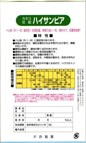 ・冷涼地の春まき、初秋まき、中間地の春まき、秋まき年内どりに適します。