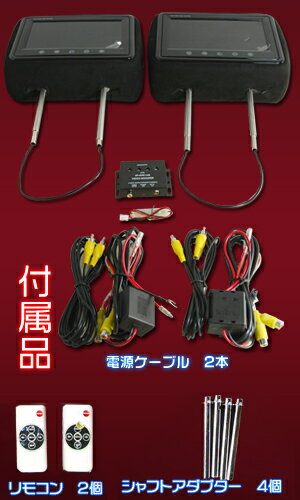 ■商品仕様 表示方式:NTSC/PAL 画素数:1024(W)X600(H) インターフェース CMOS 6-bit Digital RGB 最大輝度:350(cd/m) 映像入力:AV1/AV2 表示サイズ:16:9/4:3切替可能 サイズ:330(W)X240(H)X130(D)mm 消費電力:約7.5w 電源:DC12V 対応範囲:シャフト間隔100-180mm シャフト径10mm/12mm ■商品内容 9インチヘッドレストx2 電源ケーブル×2 AVケーブルx2 リモコンx2 シャフトアダブターx4 日本語簡易説明書x1 ■おまけ:分配器x1 解析度・デジタルワイド液晶採用 日立製高解析度WSVGA(1024x600)デジタル液晶を用いられ、高解像度、高輝度、広角表示、従来比約2倍のきめ細い画素数を実現、緻密な映像を楽しめます。