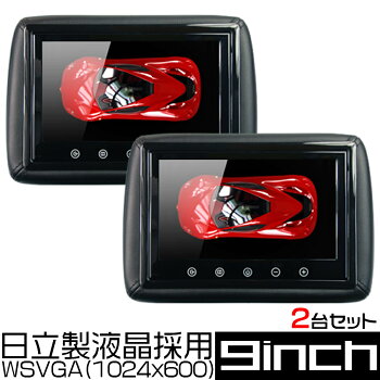ヘッドレストモニター トヨタ プリウス マイナー後 NHW11 車載用 9インチ カーモニター 「2個入り」 タッチ操作 日立製液晶WSVGA 1024x600 材質レザー 色ブラック 分配器付 1年保証 送料無料